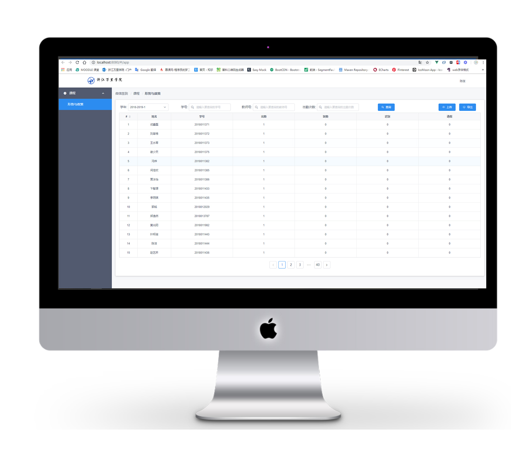 后台对签到数据进行管理,对前台数据进行统计和分析,导出excel